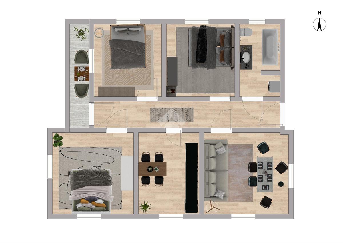 L'immobile offre un ambiente soleggiato e tranquillo, ideale per chi cerca serenità e comfort. La disposizione interna comprende locali ben distribuiti: tre camere da letto spaziose, un bagno funzionale con vano lavanderia ed un soggiorno oltre a cucina separata. Completano la proprietà un balcone e un posto auto riservato, una comodità rara in zona. Questa soluzione abitativa rappresenta un'opportunità interessante per chi cerca una residenza in una località tranquilla.