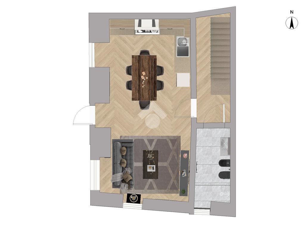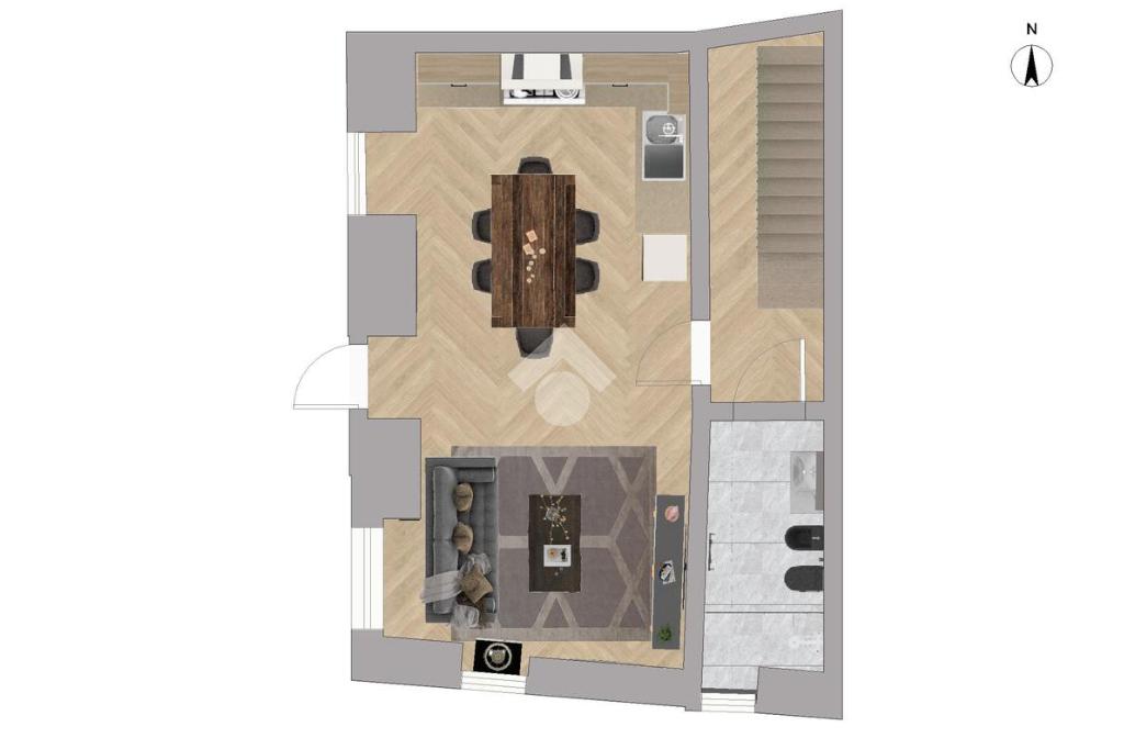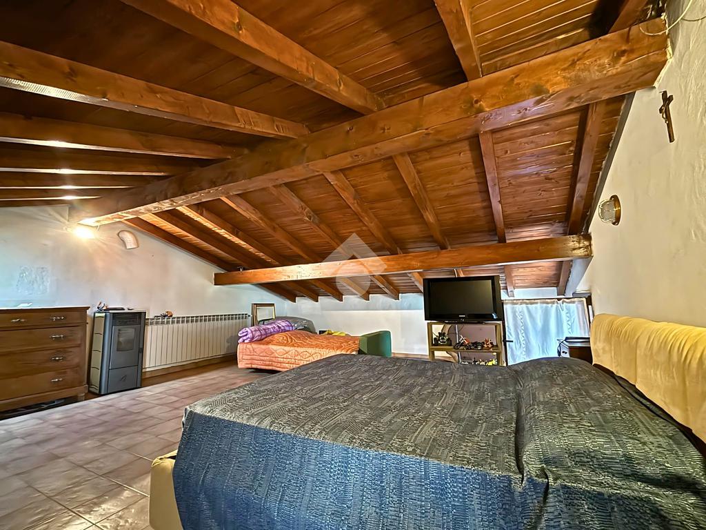 La superficie complessiva è di circa 110 mq. Al piano terra si apre una zona giorno accogliente composta da cucina abitabile con angolo pranzo e soggiorno, oltre a un bagno con doccia. Al primo piano si trovano due camere da letto e un secondo bagno finestrato con vasca. Il piano mansardato è stato rifinito e ospita uno studio e una camera per gli ospiti.