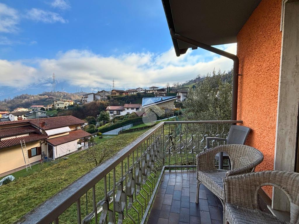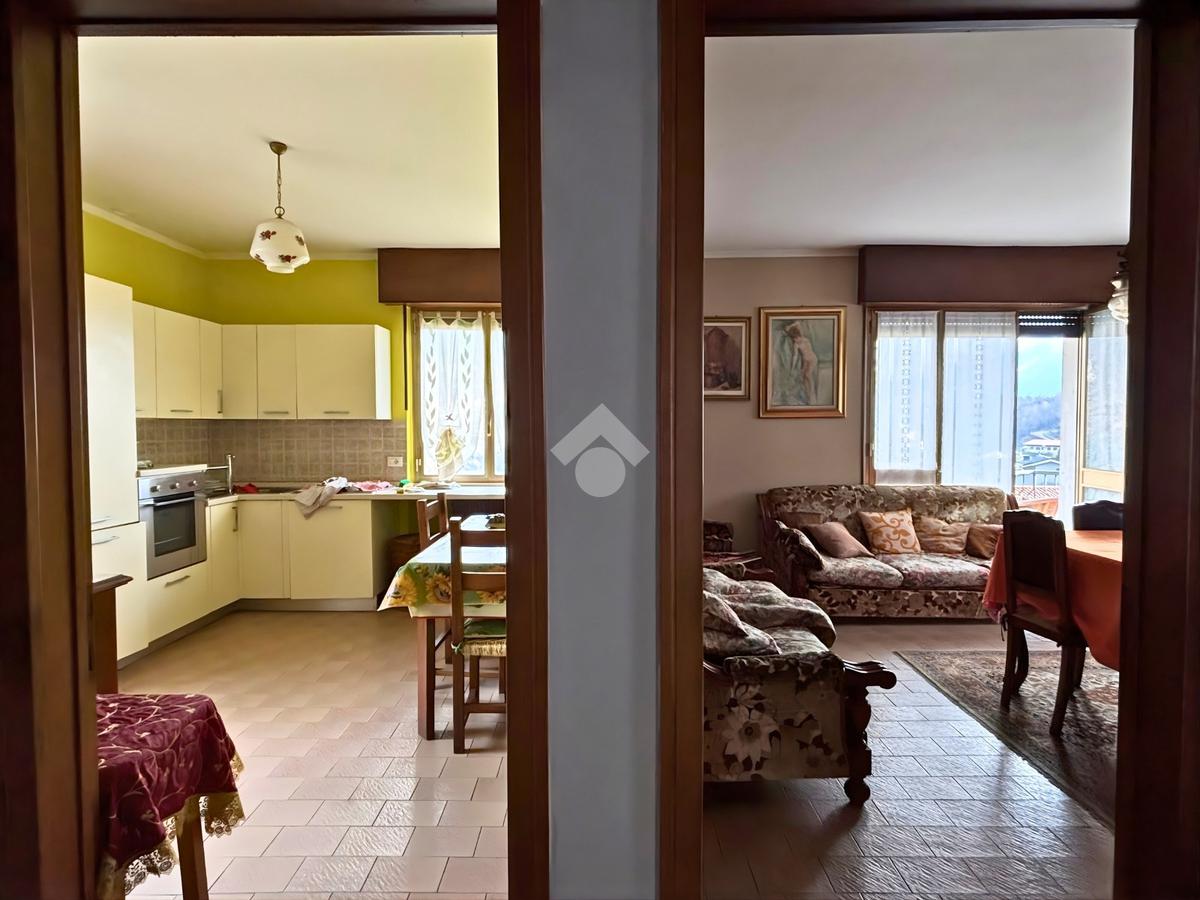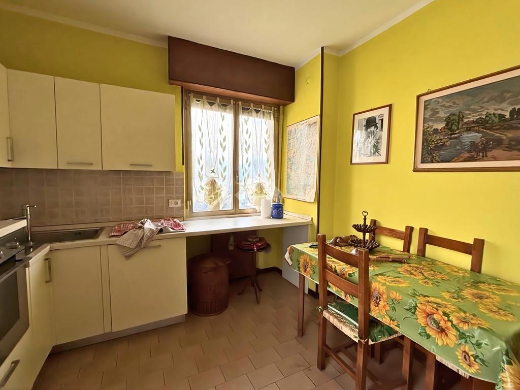 Salendo al piano primo da una scala esterna, si accede al secondo appartamento, anch’esso un trilocale ma con spazi più ampi, in cui cucina e soggiorno sono separati e affacciati ciascuno sul proprio balcone, permettendo di godere di una piacevole vista sull'abitato di Angolo Terme.