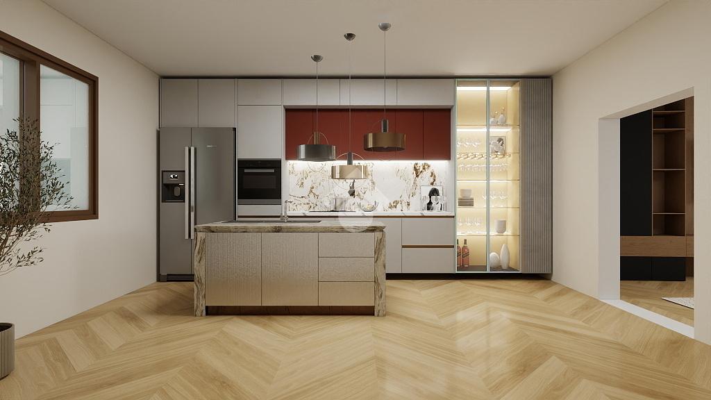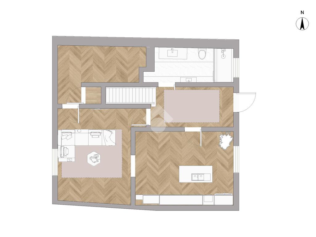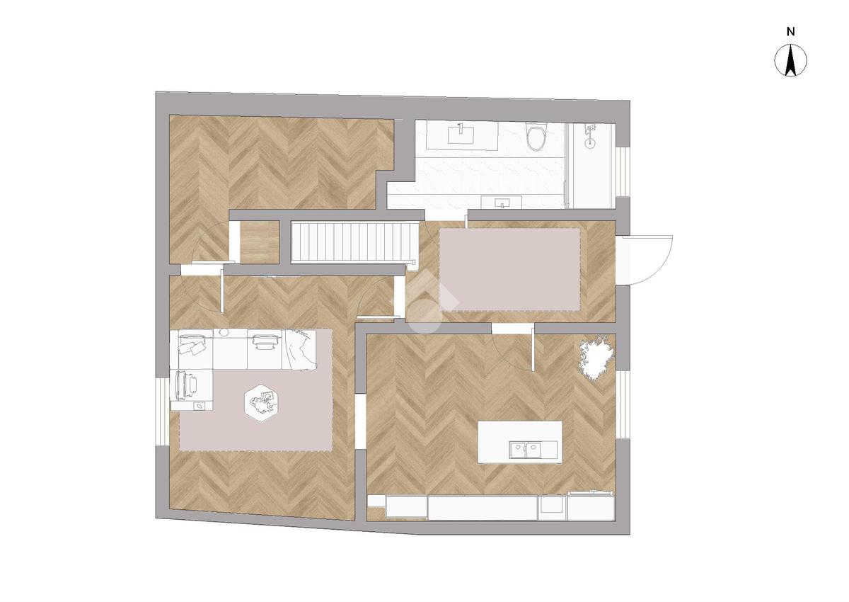 Al piano rialzato si sviluppa la zona giorno con cucina, ambiente accogliente per la vita quotidiana, affiancata da un comodo locale rimessaggio e da un servizio completo.