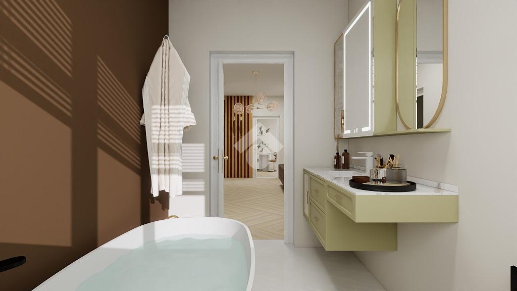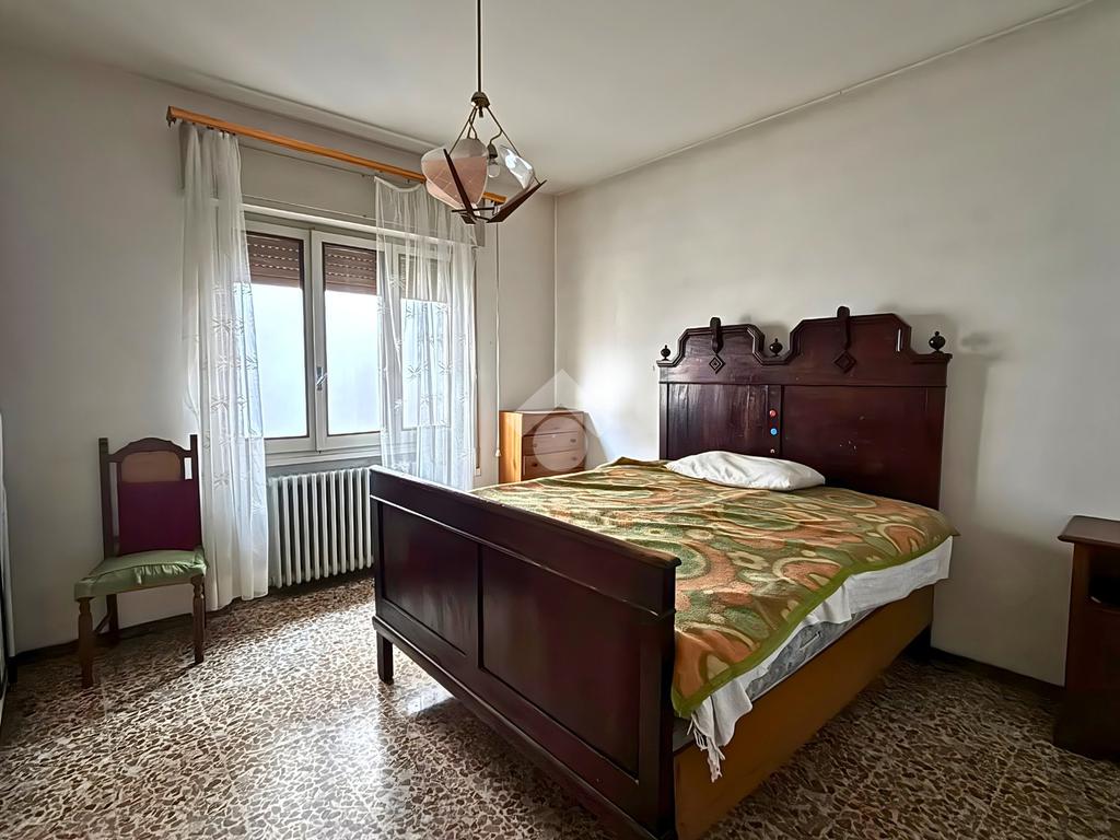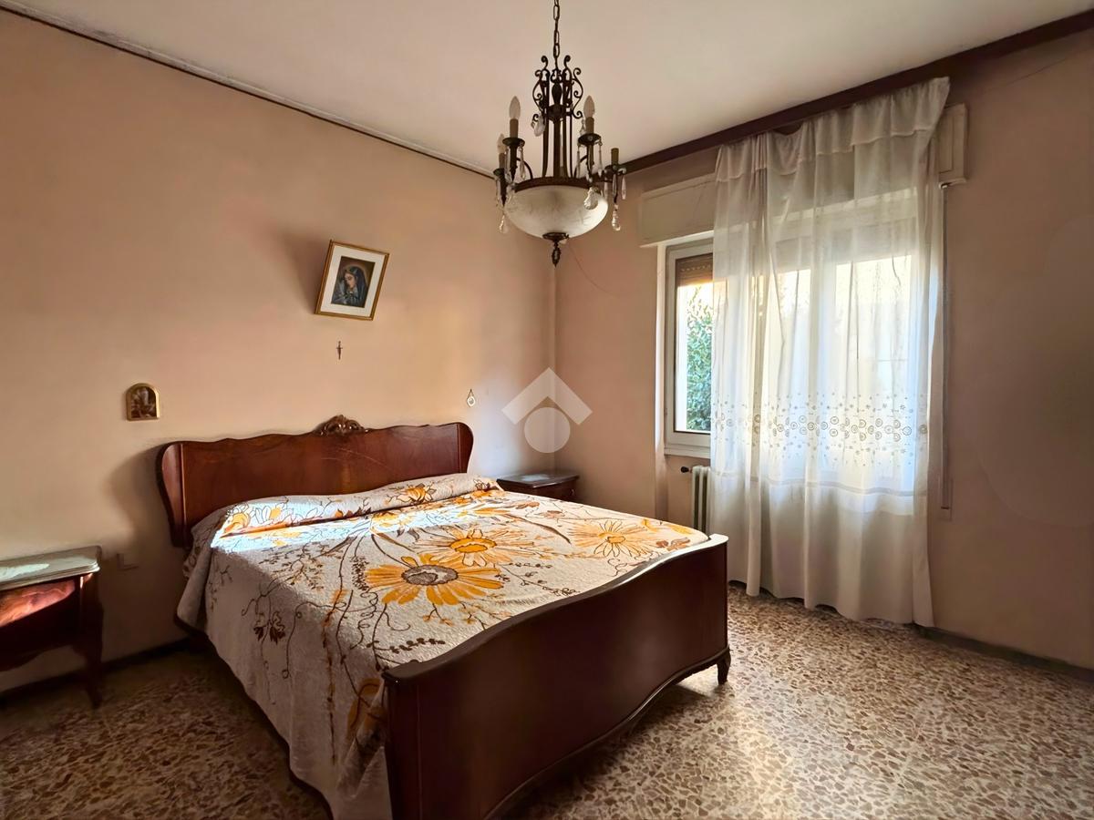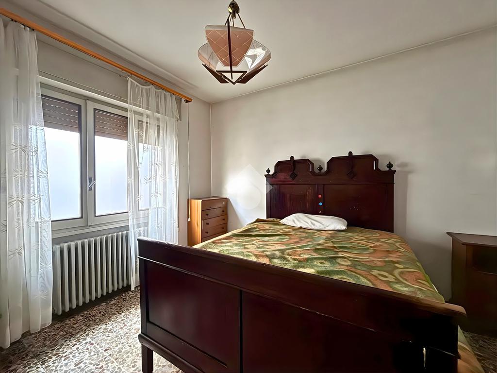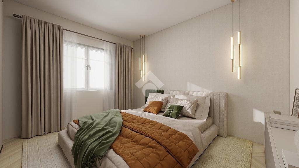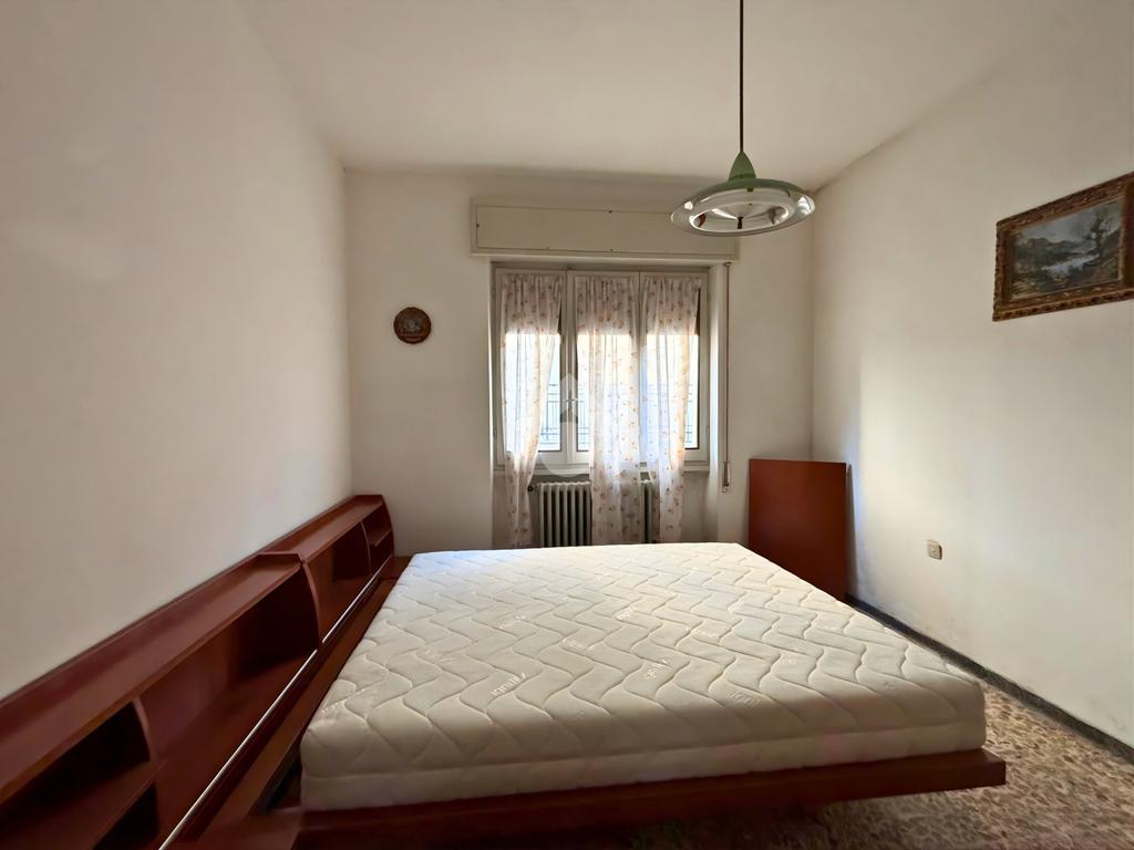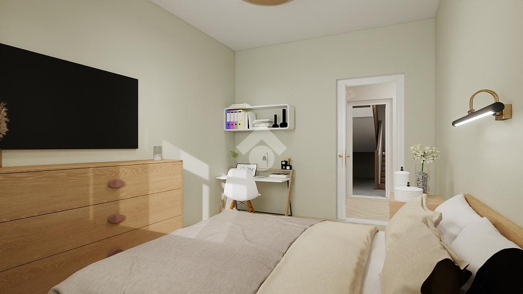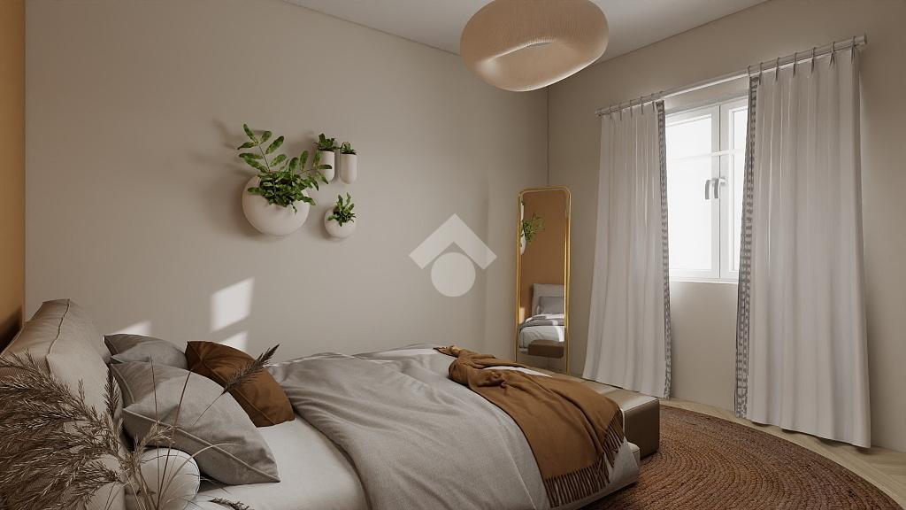La zona notte comprende tre camere matrimoniali di generose dimensioni, tutte facilmente arredabili, e un bagno finestrato con vasca, luminoso e ben ventilato.