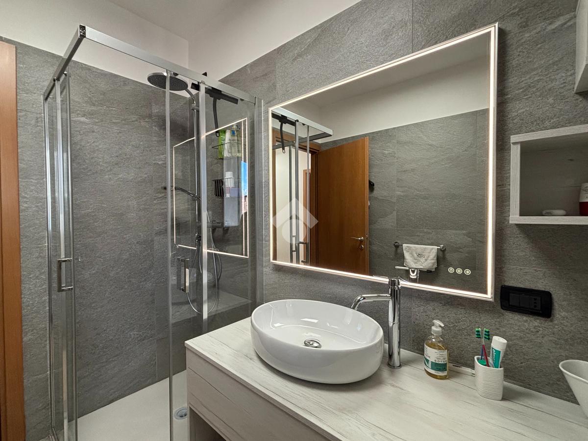 La zona notte è composta da due camere, tra cui una spaziosa camera matrimoniale con accesso a un ulteriore terrazzo, perfetto per godere di una vista riservata. Completano la proprietà un servizio funzionale e un pratico ripostiglio. L'immobile dispone inoltre di un comodo posto auto, garantendo facilità di parcheggio.
