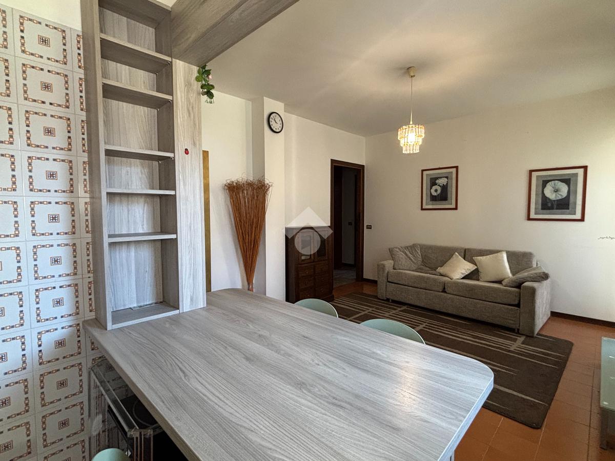 Nel cuore di Boario Terme, nel comune di Darfo Boario Terme, si propone in locazione un accogliente bilocale al primo piano. L'appartamento, di circa 55mq, è arredato e offre un ambiente open space che unisce soggiorno e cucina, creando uno spazio funzionale e moderno. La camera da letto è luminosa e si affaccia su un balcone che serve anche il soggiorno, ideale per momenti di relax all'aperto. Il bagno, seppur cieco, è ben organizzato e pratico. L'immobile dispone di un sistema di riscaldamento centralizzato, garantendo comfort durante tutto l'anno. Completa la proprietà un comodo box auto, offrendo una soluzione pratica per il parcheggio.