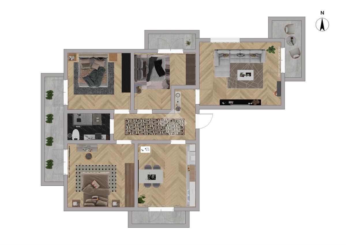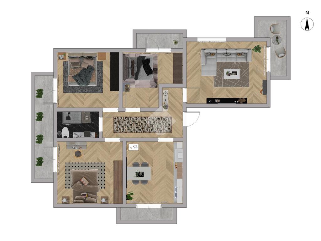 L’appartamento si distingue per le generose metrature e per una distribuzione degli spazi funzionale e accogliente. La zona giorno è composta da una cucina abitabile con accesso al balcone e da un luminoso soggiorno, impreziosito da un camino e servito anch’esso da balcone. La zona notte offre tre camere da letto, due delle quali collegate da un balcone comune, mentre la terza risulta indipendente. Completa la proprietà un bagno finestrato, dotato sia di vasca che di doccia, oltre a un comodo box auto privato.