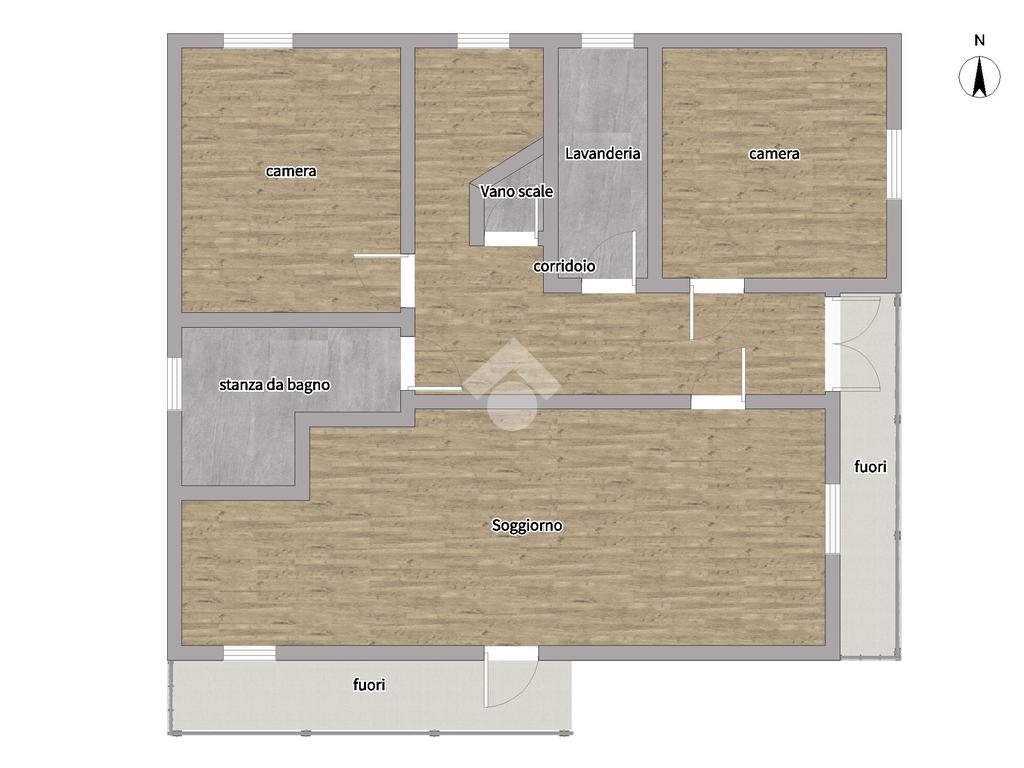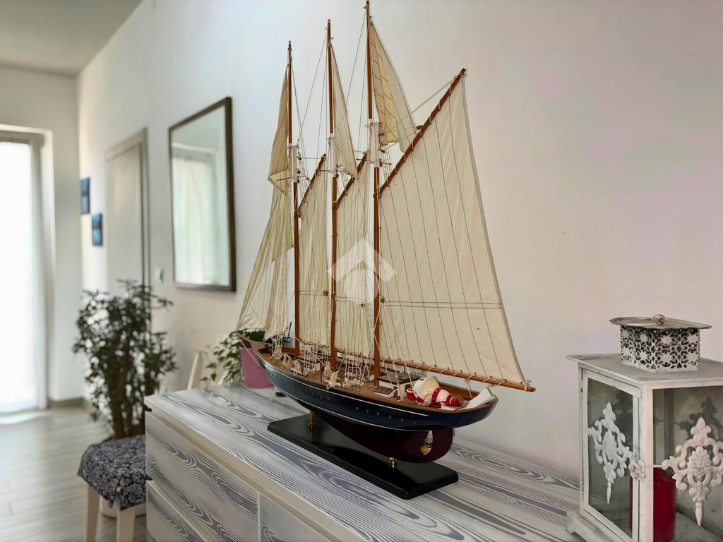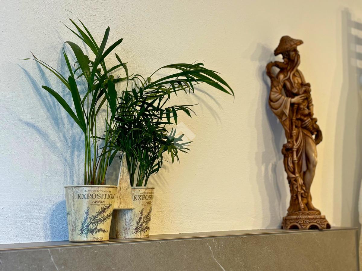 La zona giorno si sviluppa in un luminoso open space con cucina a vista, mentre la zona notte comprende due camere, di cui una attualmente adibita a cabina armadio. Il bagno finestrato è dotato di un ampio box doccia. Completa il piano una lavanderia e un disimpegno dal quale si accede comodamente al balcone.