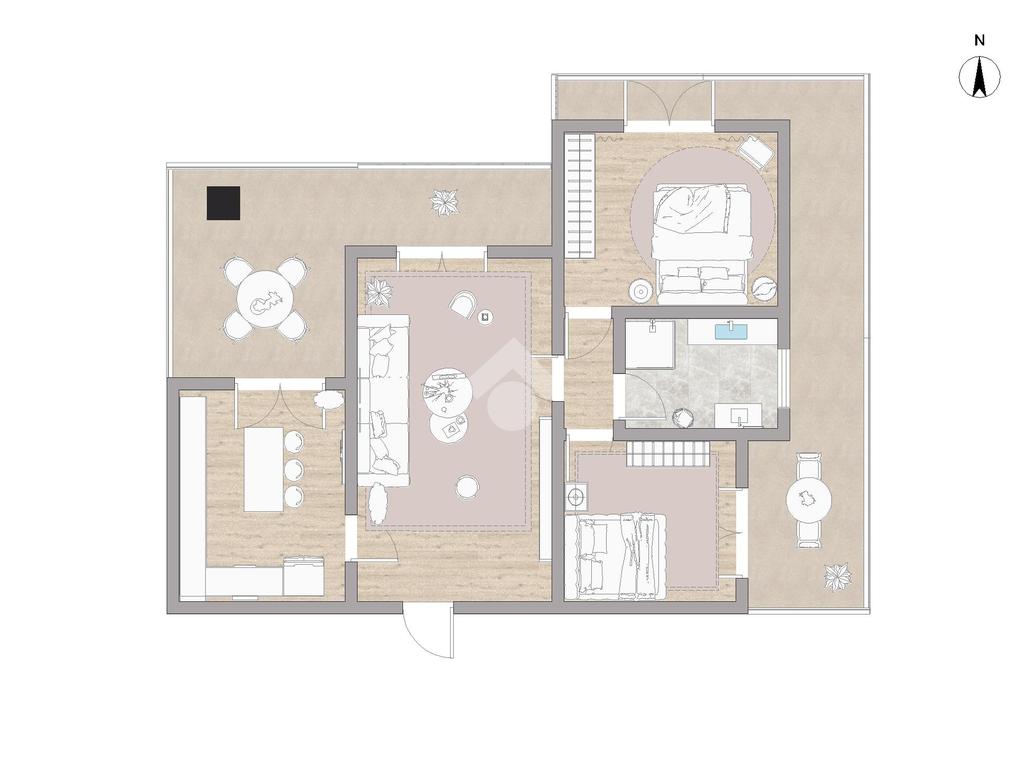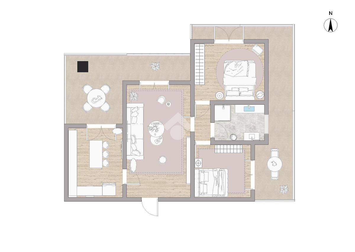La zona notte, ben separata, è composta da due camere da letto di generose dimensioni e da un servizio. Le camere dispongono entrambe dell’accesso a un secondo balcone, offrendo ulteriore luminosità e uno sfogo esterno riservato e vivibile. Completano la proprietà un sottotetto, una cantina e un box auto privati, elementi che conferiscono ulteriore praticità e valore all’immobile.