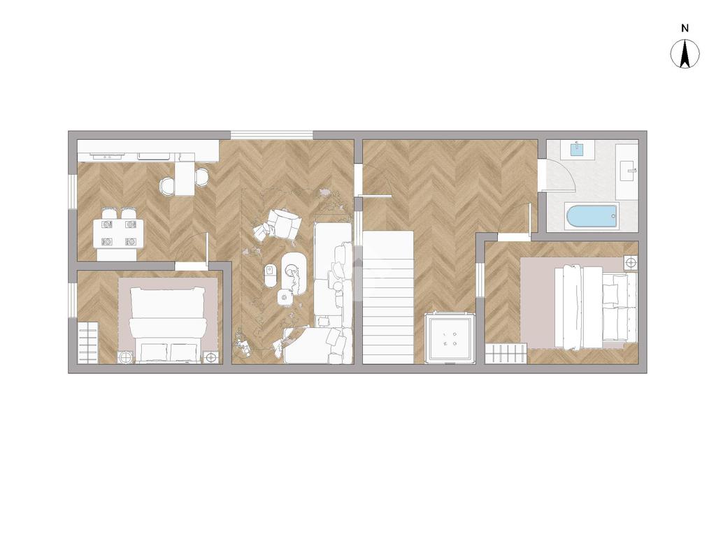 Completano questo piano due camere da letto ed il secondo servizio, provvisto di vasca.