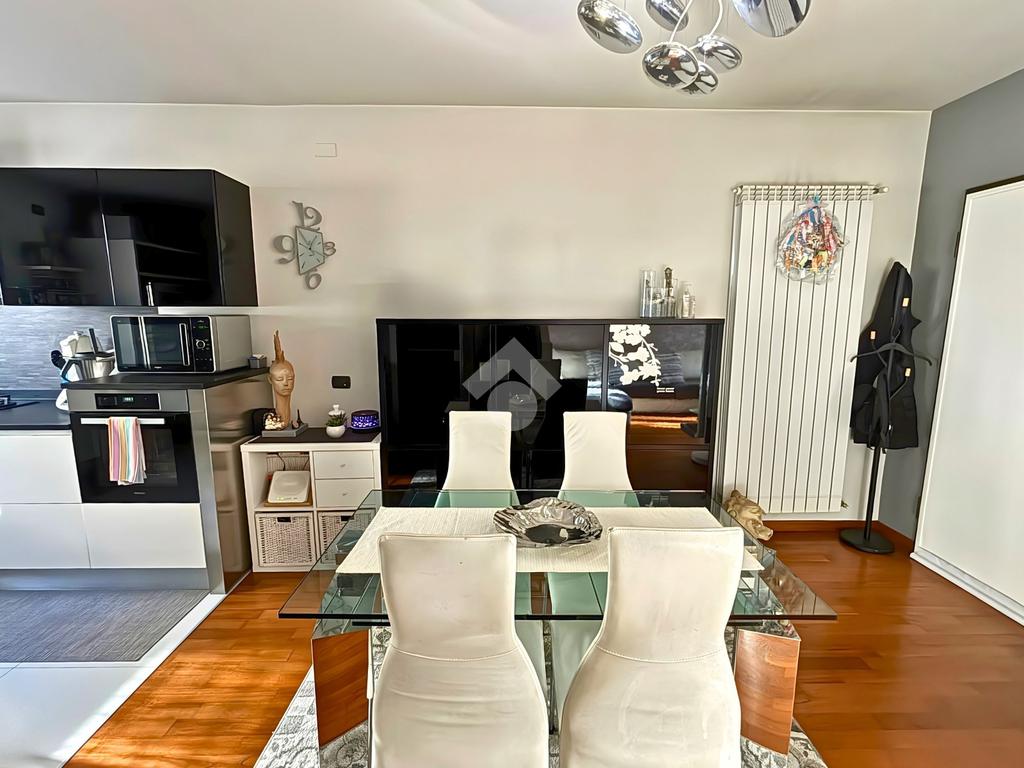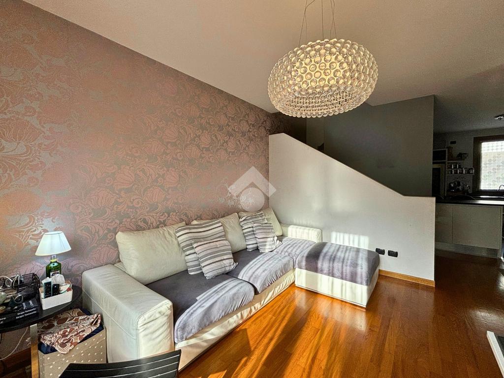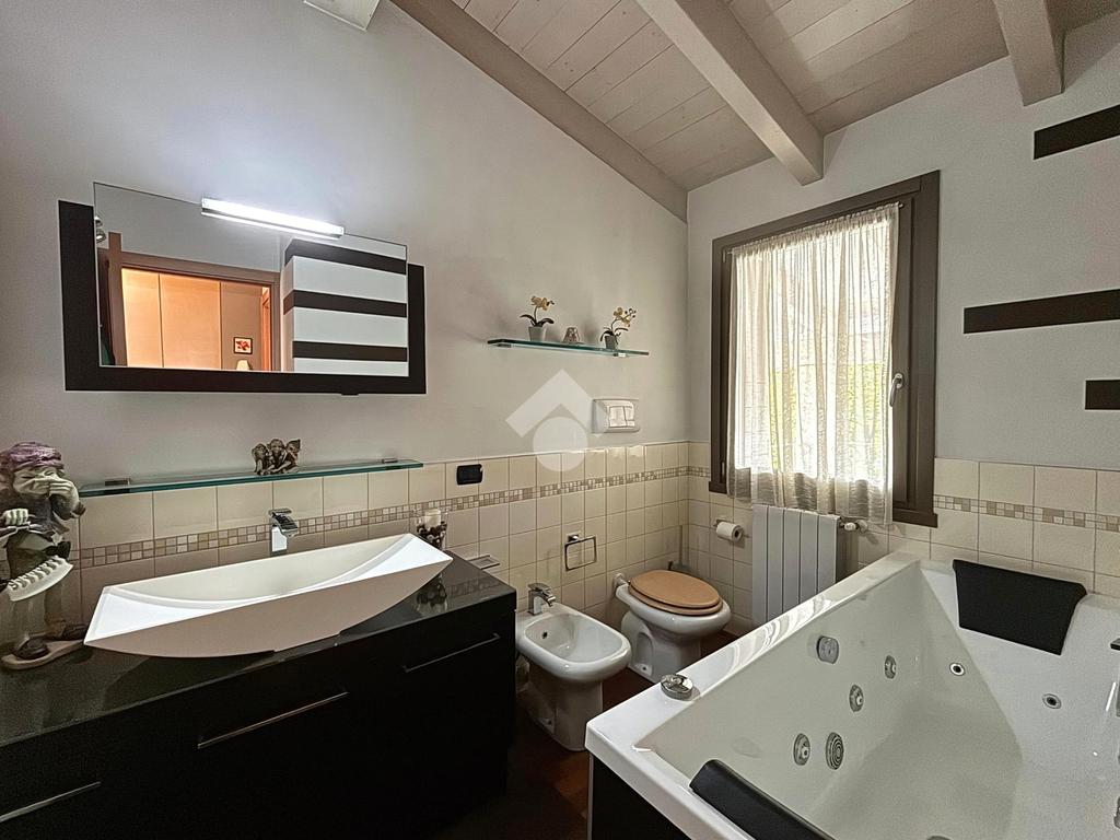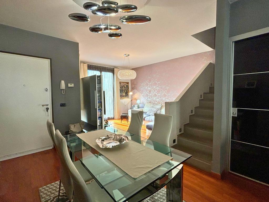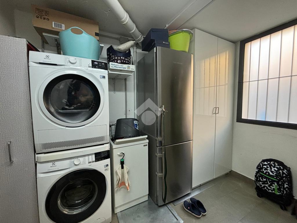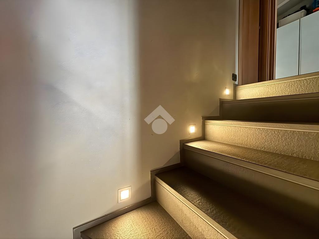 Una scala interna, comoda ed elegante, collega i diversi piani: a metà livello si trova un pratico servizio, mentre al piano interrato sono presenti la lavanderia, un ampio box auto e la cantina — spazi perfetti per chi desidera ordine e funzionalità.