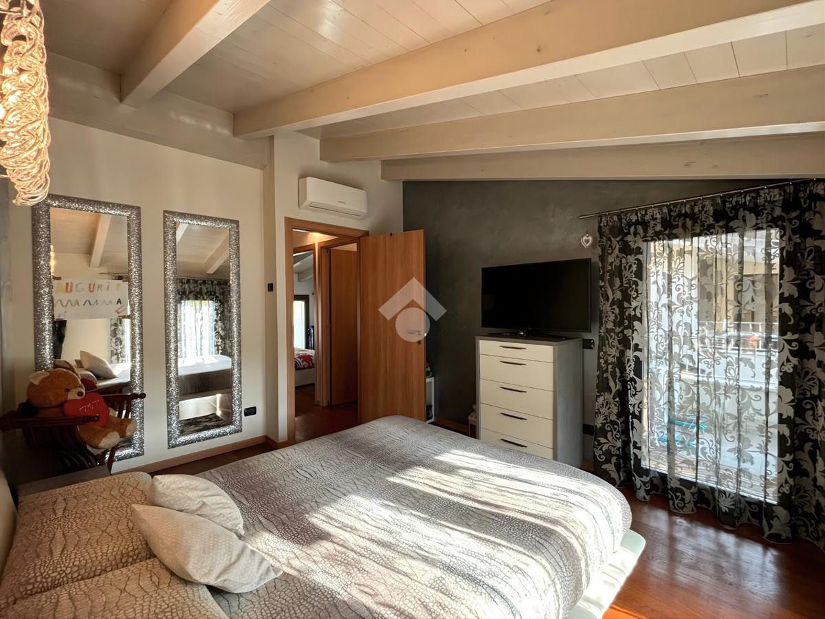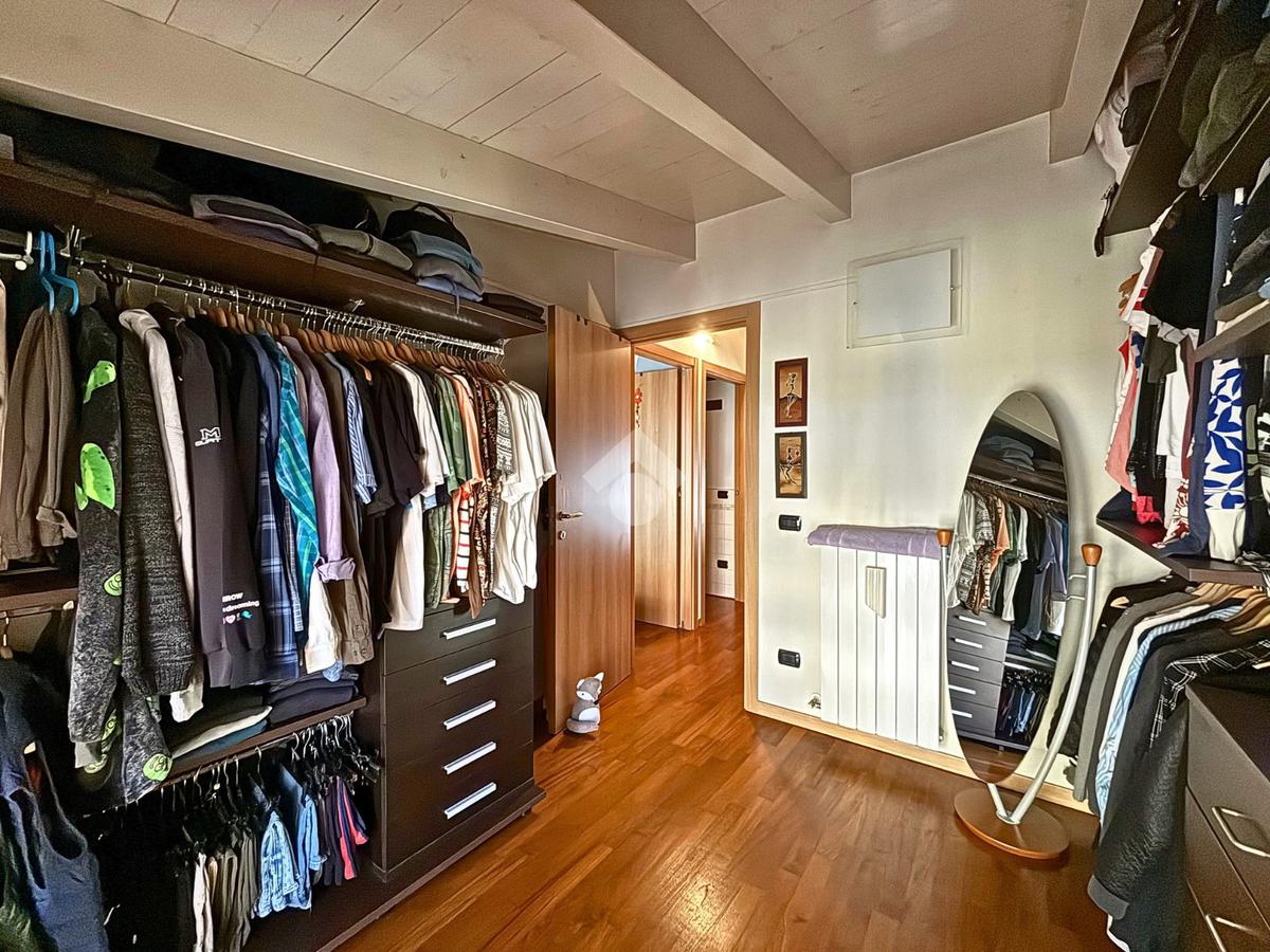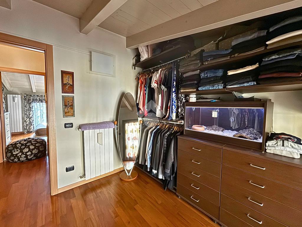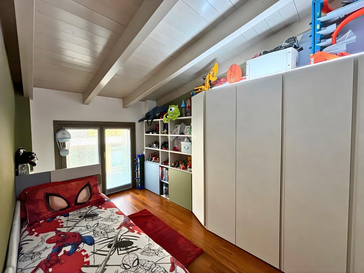 La zona notte, situata al piano superiore, ospita una raffinata camera padronale con cabina armadio, un bagno finestrato e un ulteriore locale oggi adibito a stanza, ideale come studio o camera per gli ospiti.