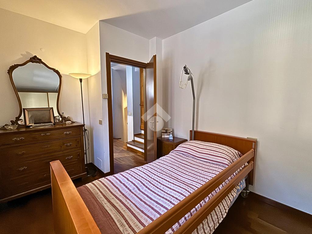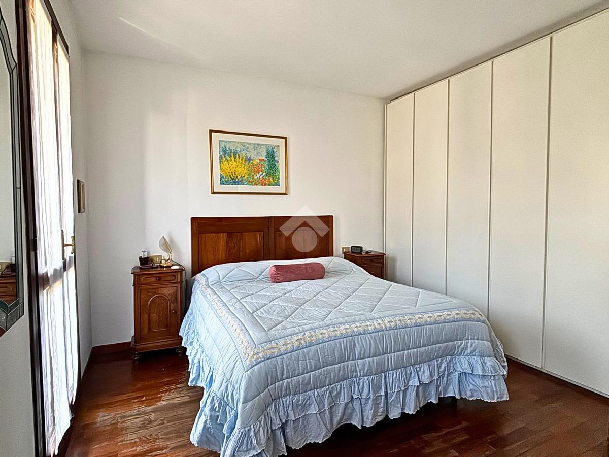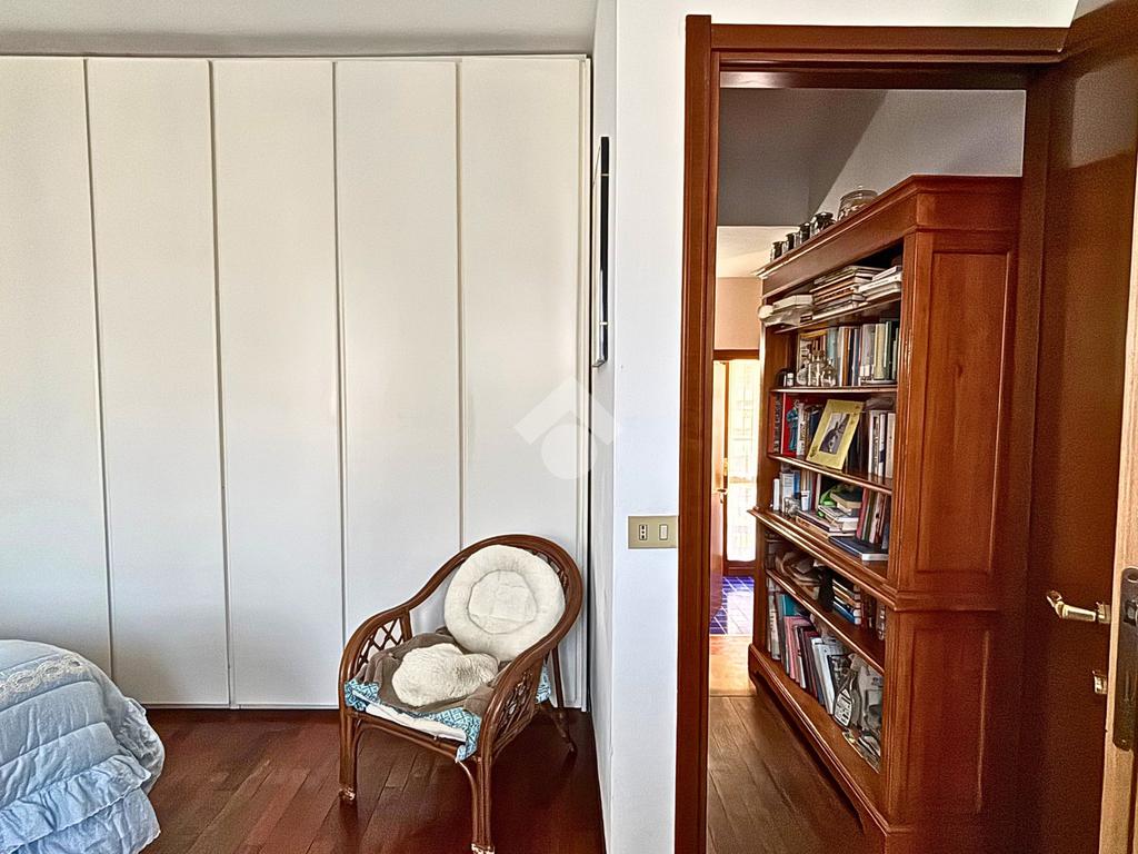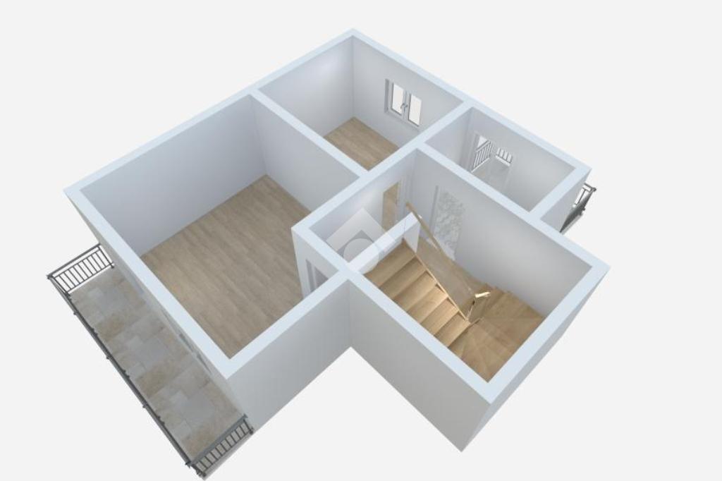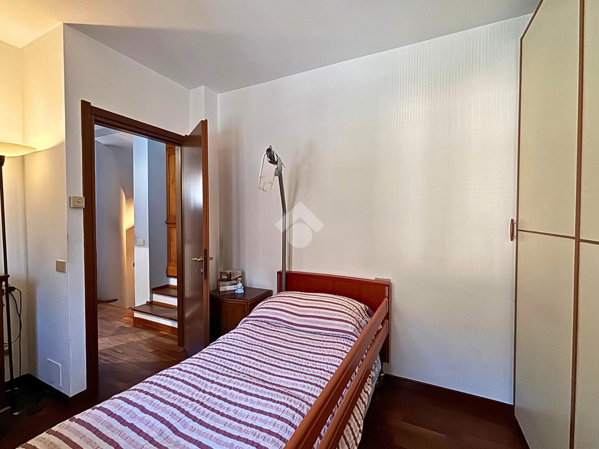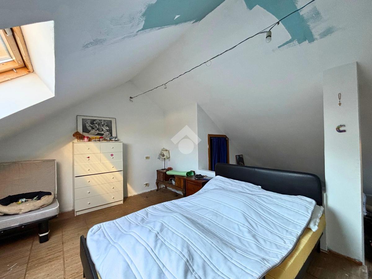 La zona notte si sviluppa al primo piano e comprende due camere da letto ben proporzionate, di cui una con balcone, oltre a un bagno finestrato anch’esso dotato di balcone, che garantisce luce naturale e comfort. Salendo all’ultimo livello, la mansarda, attualmente adibita a camera ospiti, offre un ambiente intimo e versatile, adatto anche come studio o spazio relax.