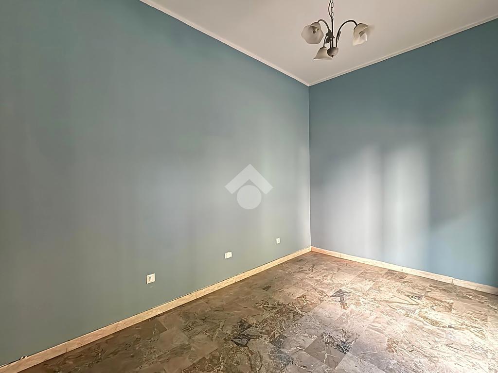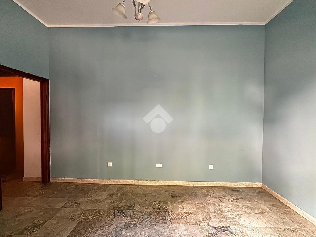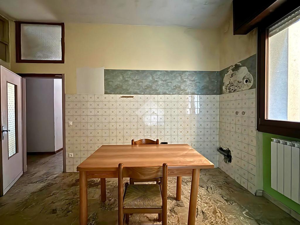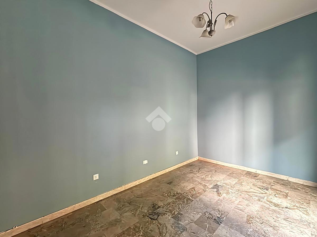 L’appartamento, posizionato sul retro, si estende per circa 75 mq e comprende due camere, bagno finestrato, ripostiglio e terrazza privata. Gli interni richiedono interventi di ammodernamento, ma offrono ottimo potenziale abitativo.