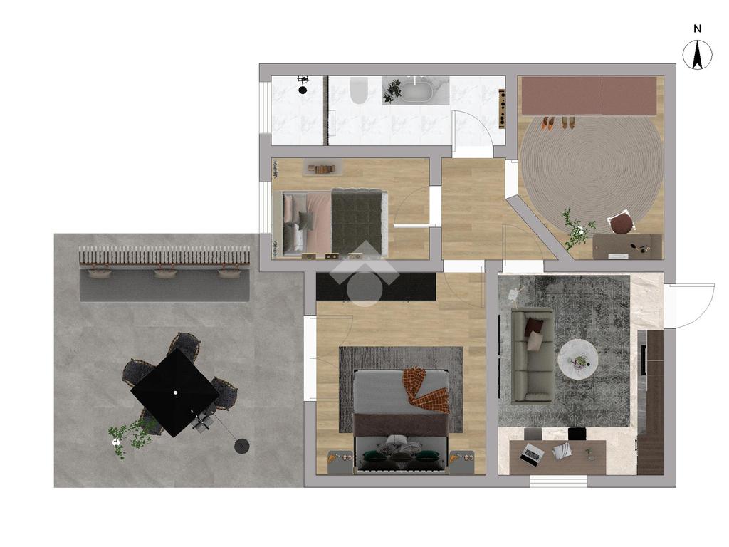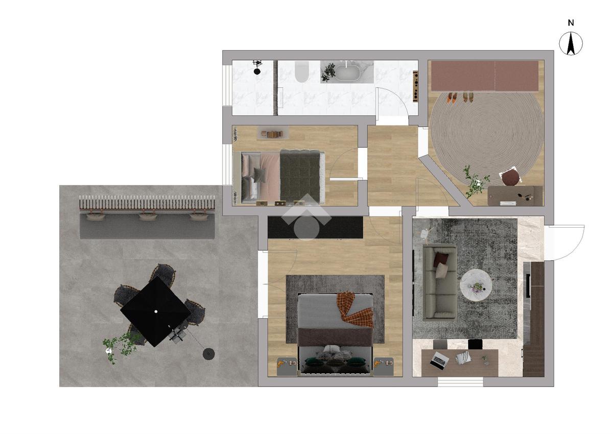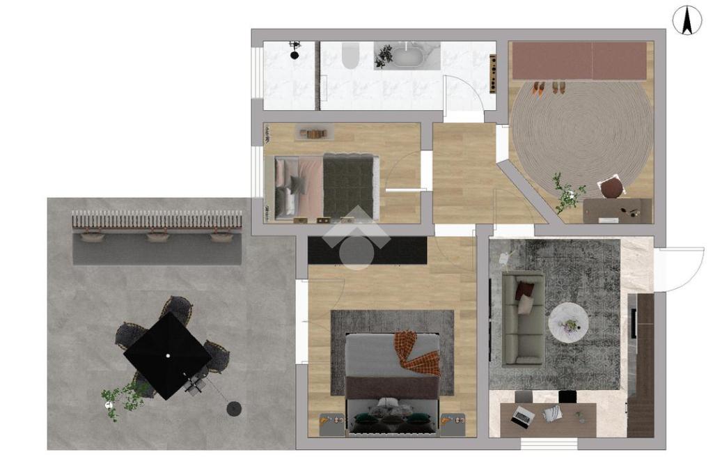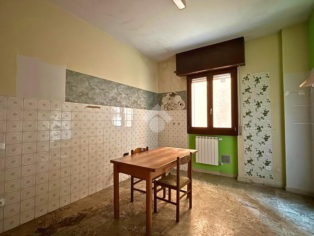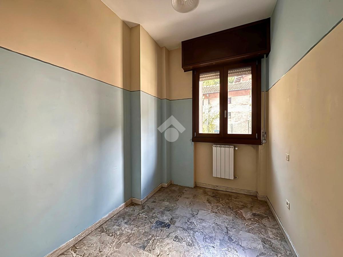 L’appartamento, posizionato sul retro, si estende per circa 75 mq e comprende due camere, bagno finestrato, ripostiglio e terrazza privata. Gli interni richiedono interventi di ammodernamento, ma offrono ottimo potenziale abitativo.