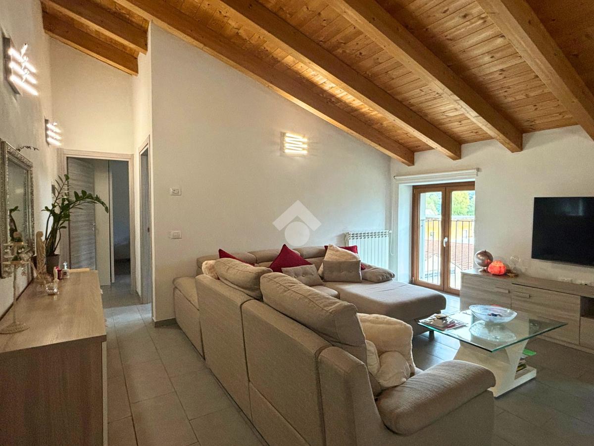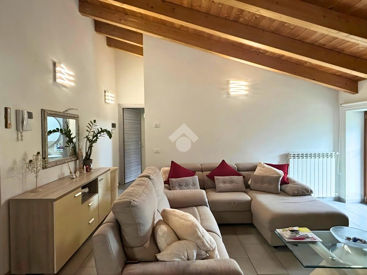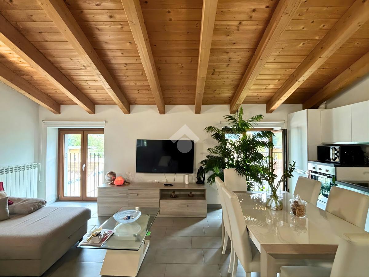 L’appartamento, completamente ristrutturato nel 2019, unisce comfort moderni e fascino architettonico grazie agli spazi mansardati con travi a vista. La zona giorno si presenta come un accogliente open space, luminoso e funzionale, mentre la camera da letto, di circa 19 mq, offre grande vivibilità.