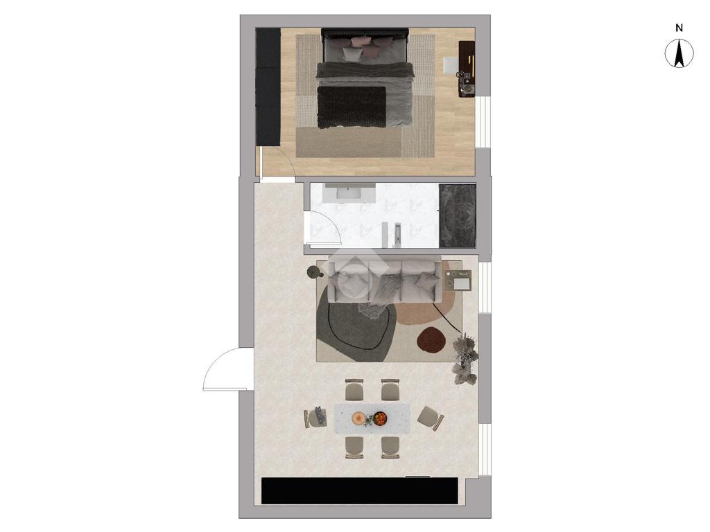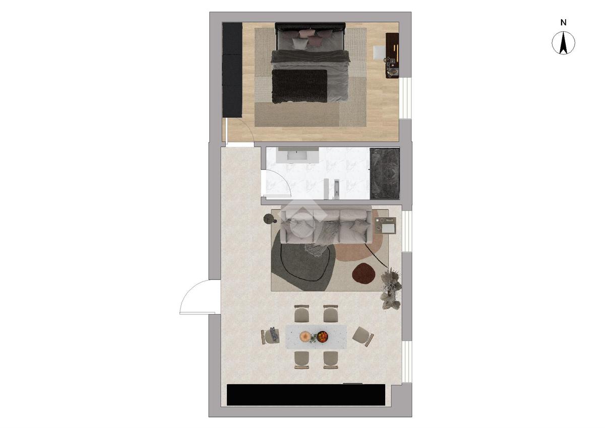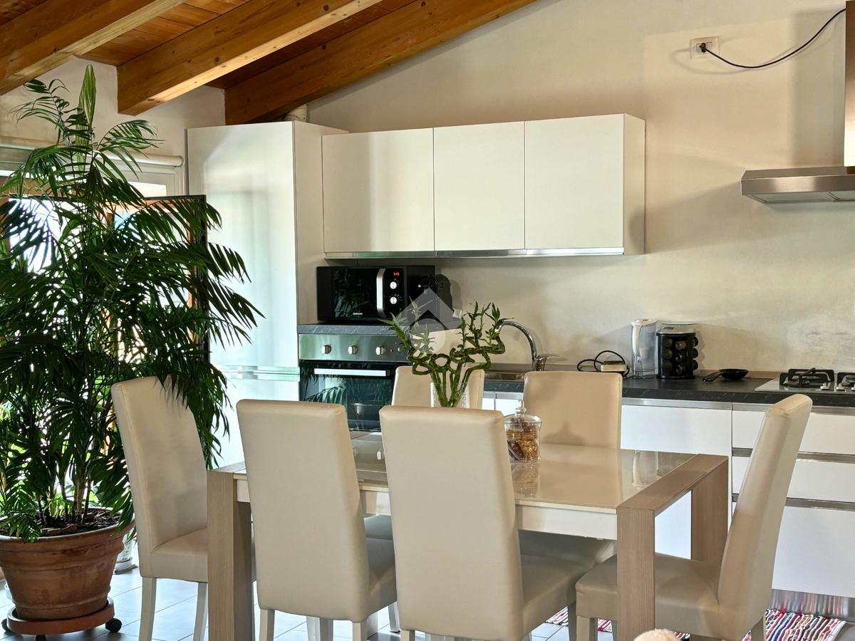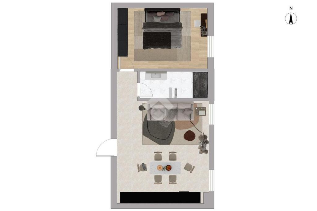 L’appartamento, completamente ristrutturato nel 2019, unisce comfort moderni e fascino architettonico grazie agli spazi mansardati con travi a vista. La zona giorno si presenta come un accogliente open space, luminoso e funzionale, mentre la camera da letto, di circa 19 mq, offre grande vivibilità.