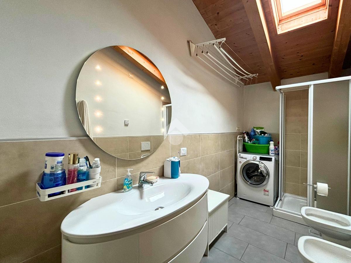 Il bagno, curato nei dettagli e dotato di abbaino e doccia, è pronto all’uso. Attualmente locata, la proprietà rappresenta un investimento solido e immediatamente redditizio.